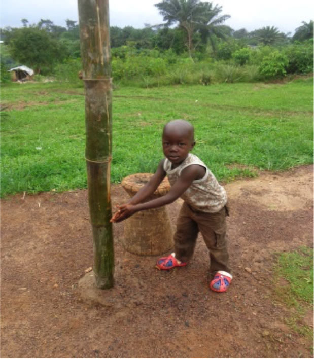 A Liberian kid in Grand Gedeh County demonstrates to journalist Moses Geply how hand-washing procedures keep him away from Ebola © Photo: Moses Geply/Journalist